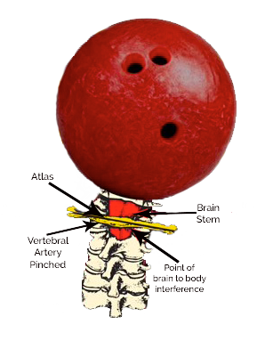 The most important structure in this area is the lower brain stem, which extends out of the skull into the upper neck, before transitioning into the spinal cord. The significance of the lower brainstem is that it controls most of the vital automatic functions of the body including heart rate, digestion, breathing, blood pressure, and many reflexes. Also passing through this area are the postural reflexes, that unconsciously control muscle tone throughout the spine. In addition, this area is critical for regulating the body’s inflammatory response.